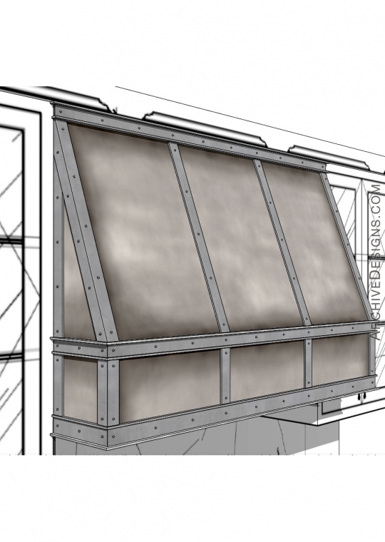 This kitchen hood in "Relic" distressed nickel silver with an antique patina for an apartment in the San Remo building on Central Park, New York.
